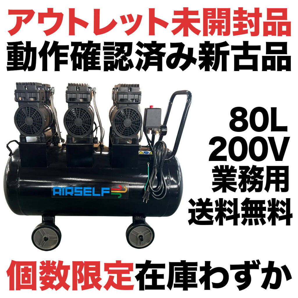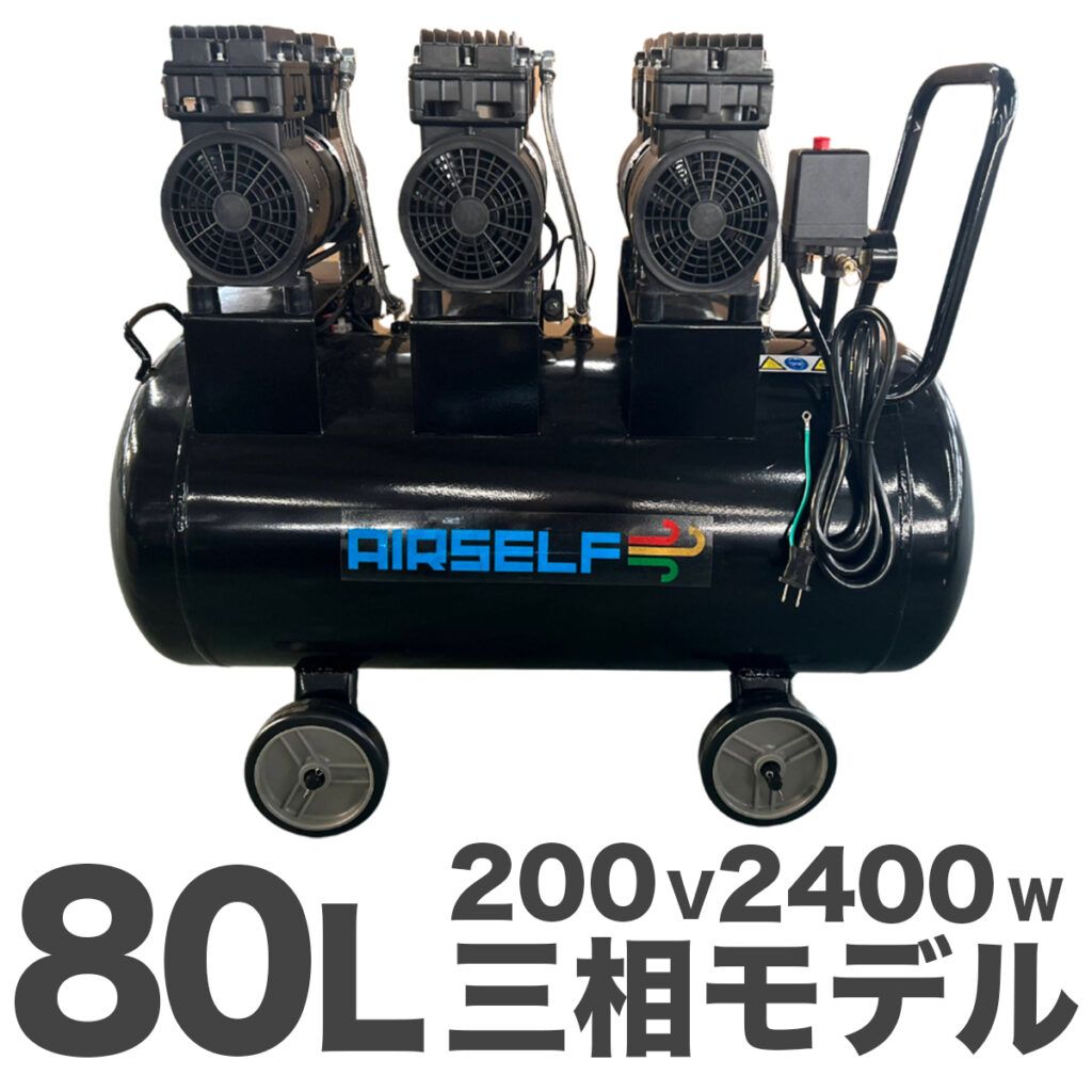 エアセルフ静音オイルレスコンプレッサー 80L 三相200V ブラック アウトレット