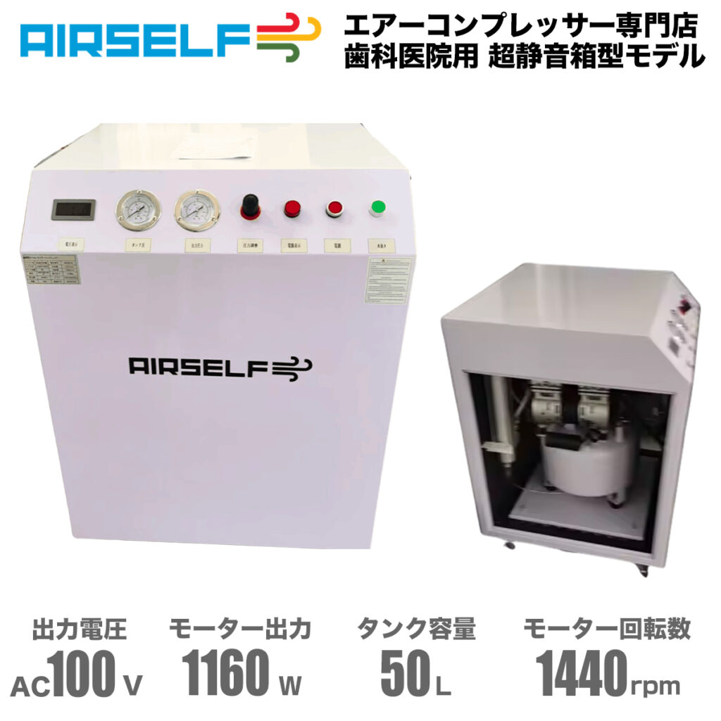 エアセルフ 歯科用パッケージコンプレッサー 50L 100V ドライヤー付き