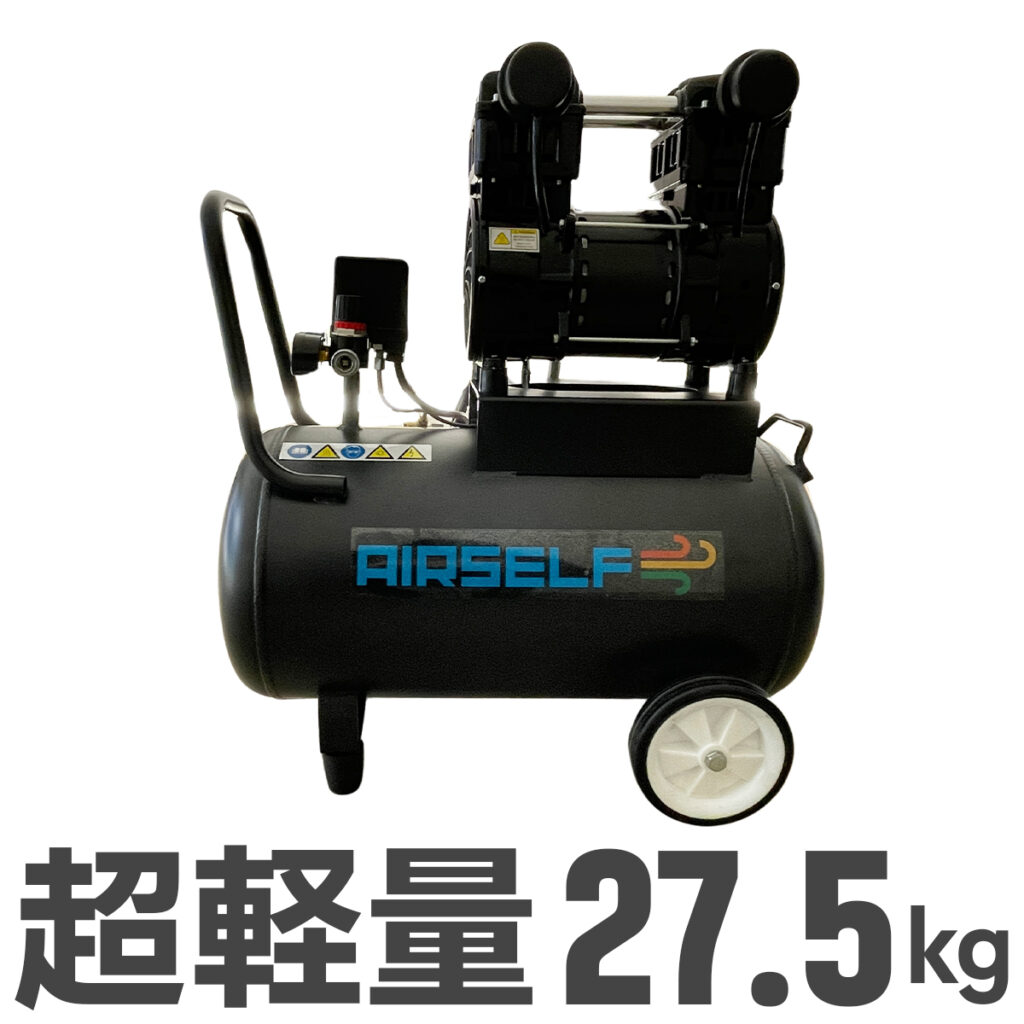 エアーコンプレッサー50L静音軽量アルミ製100Vオイルレス型【エアセルフ】