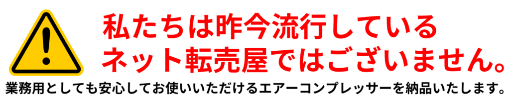しかし、私たちはエアコンプレッサー専門店として全商品を自社で企画製造し、自社倉庫を構えている法人ですのでご安心いただければ幸いです。