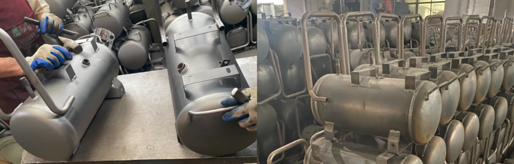 例えば、塗装やエアブラシなど連続して高い空気供給が必要な作業では、より大きなタンクが求められます。ガレージ作業をはじめ自動車整備工場様からも当店の50Lサイズと80Lサイズを購入される方が多い印象です。