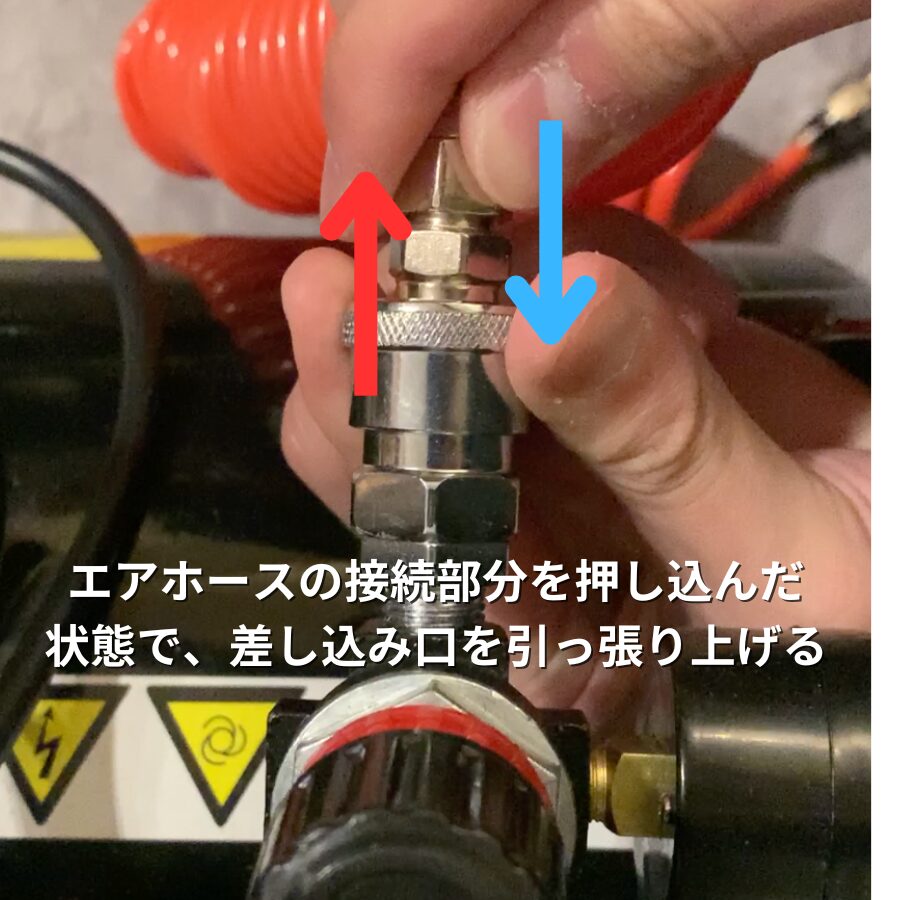 • エアホースを差し込んだ状態で、カプラーを手前側に引きます。
