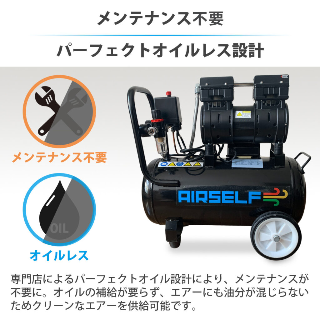 オイルレスコンプレッサーは、オイル式コンプレッサーと比べてメンテナンスが簡単です。オイル交換やオイルフィルターの交換が不要であり、手間や時間を節約することができます。