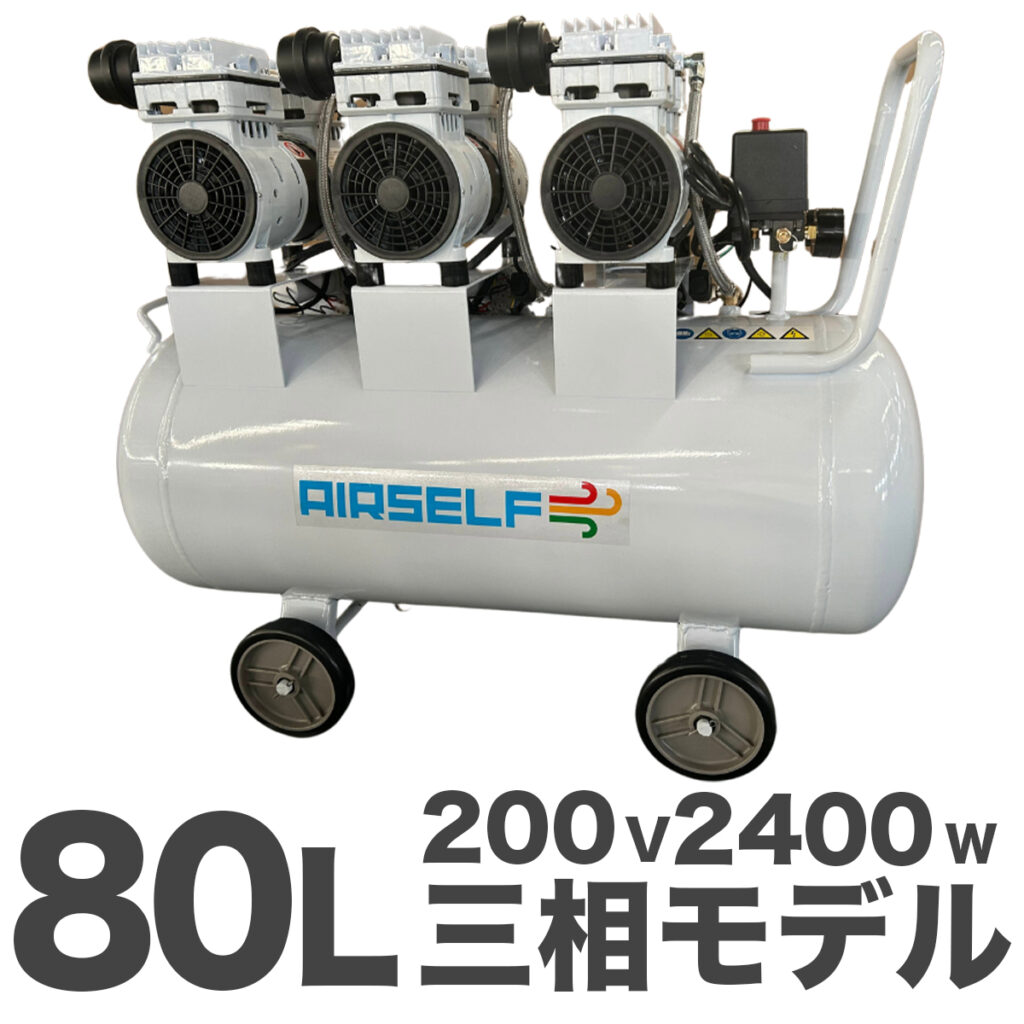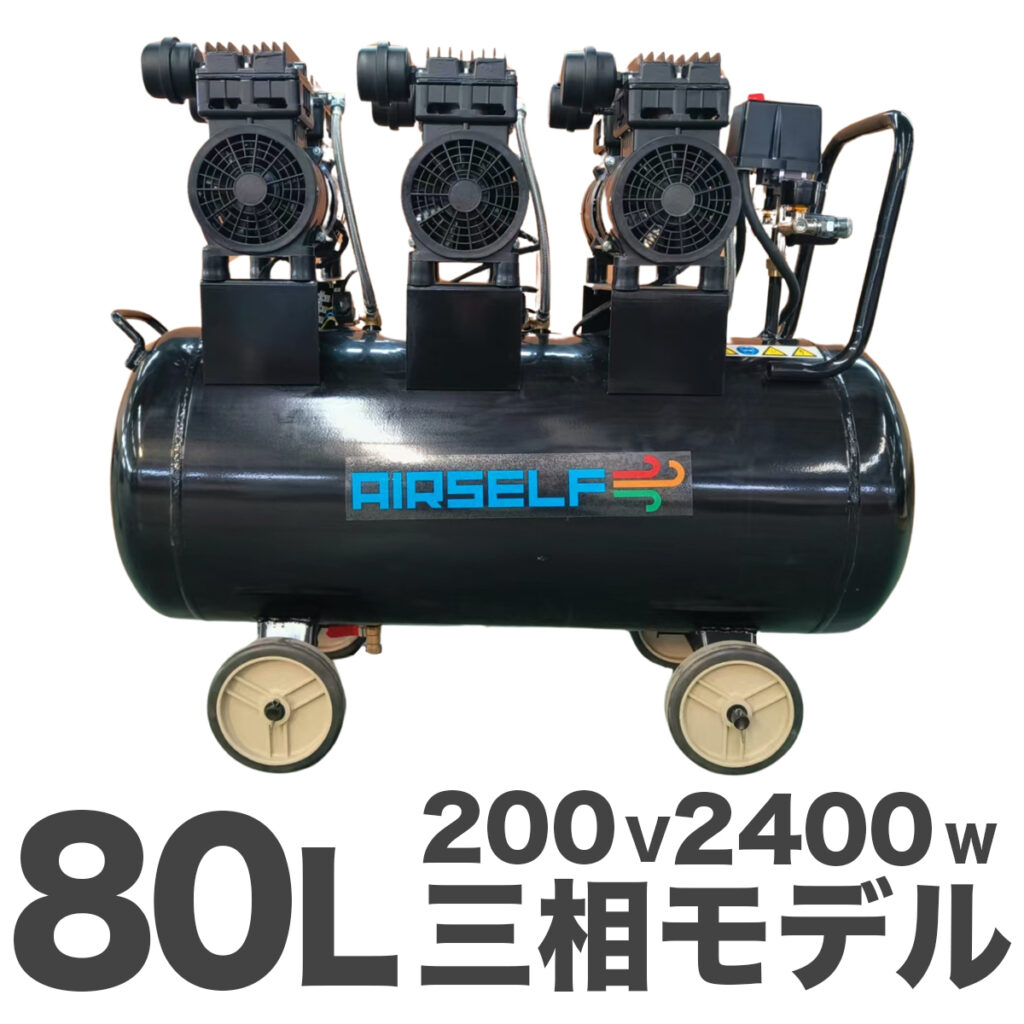 特に業務用として評価の高い80L・200Vタイプは、大容量・高出力ながらも静音・オイルレス仕様により、快適かつ安全な作業環境を実現します。