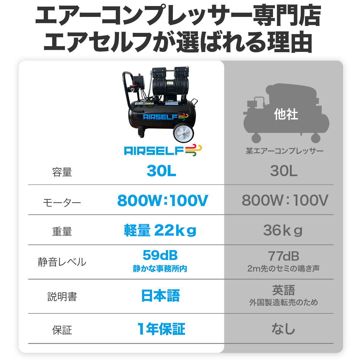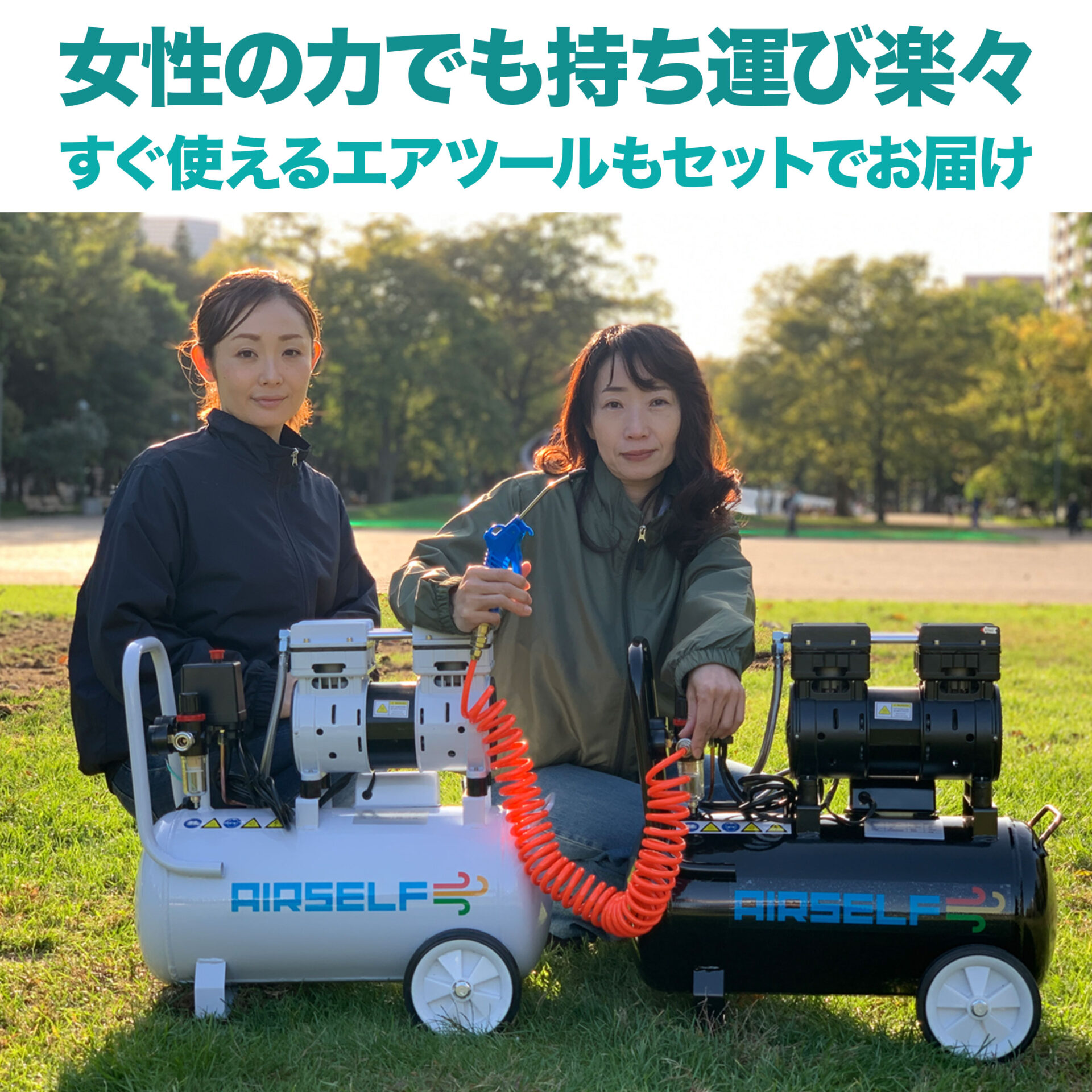 エアーコンプレッサー30L静音100Vオイルレス型【エアセルフ】