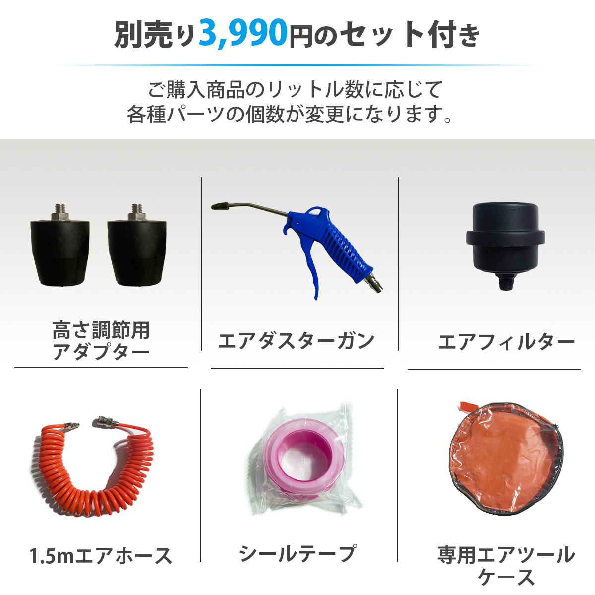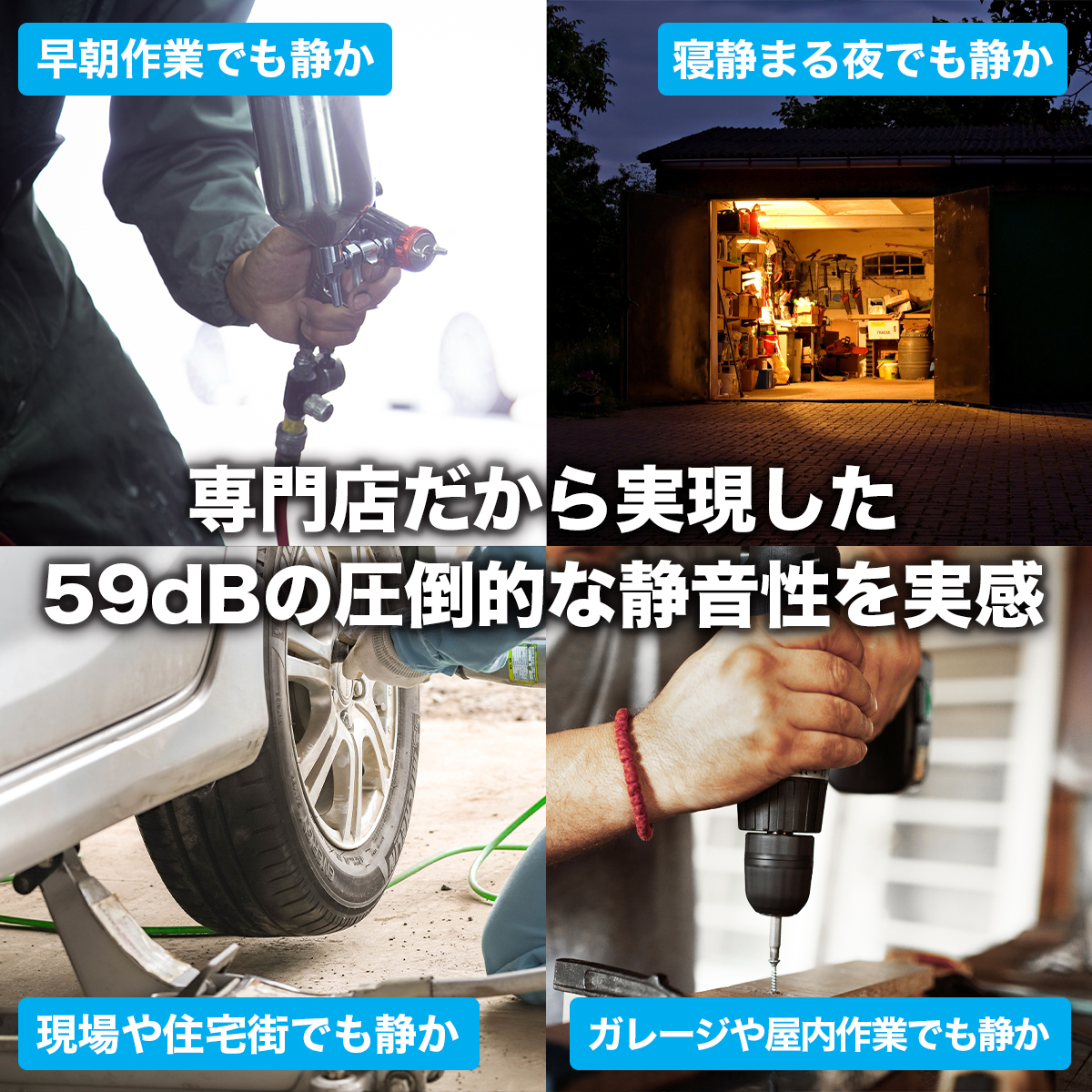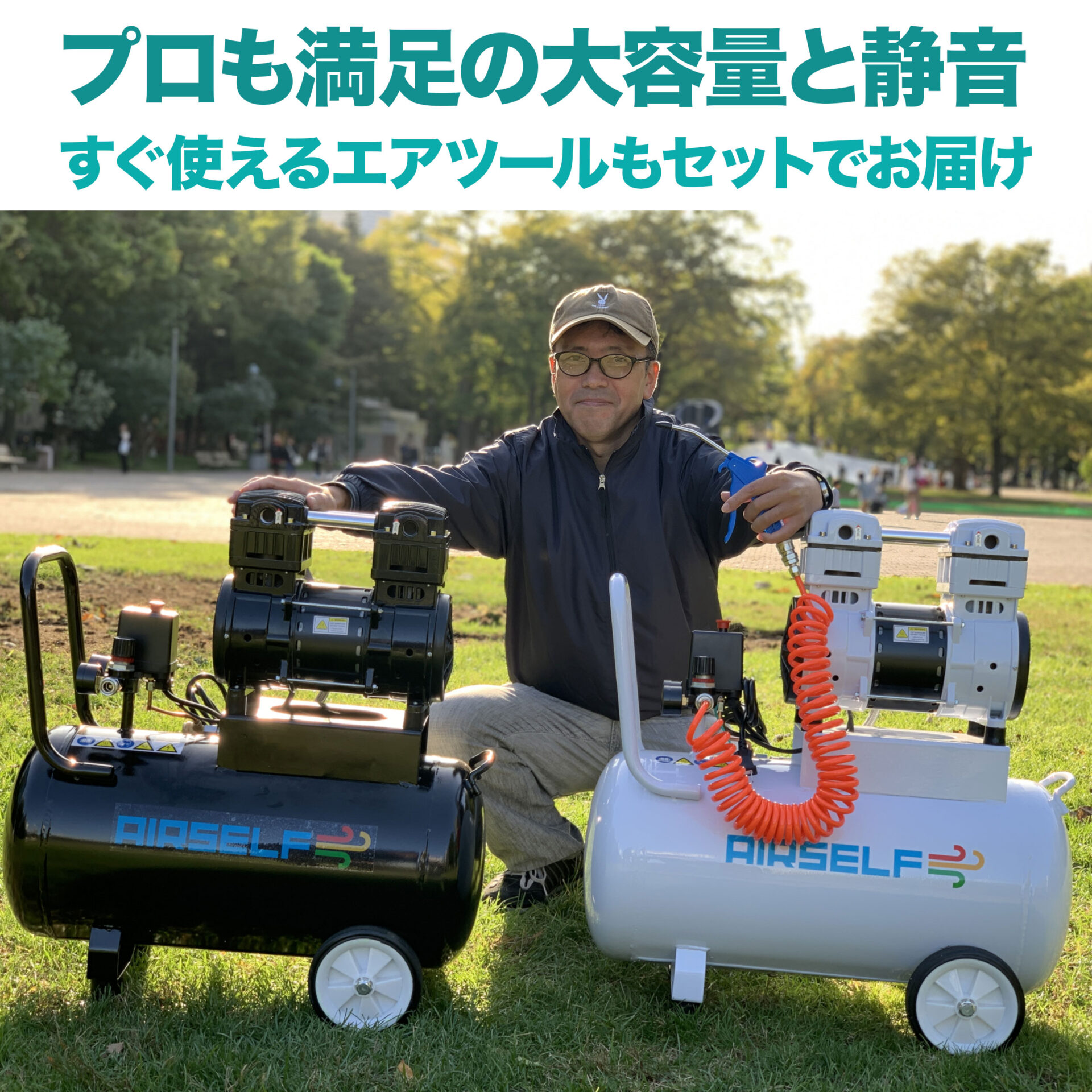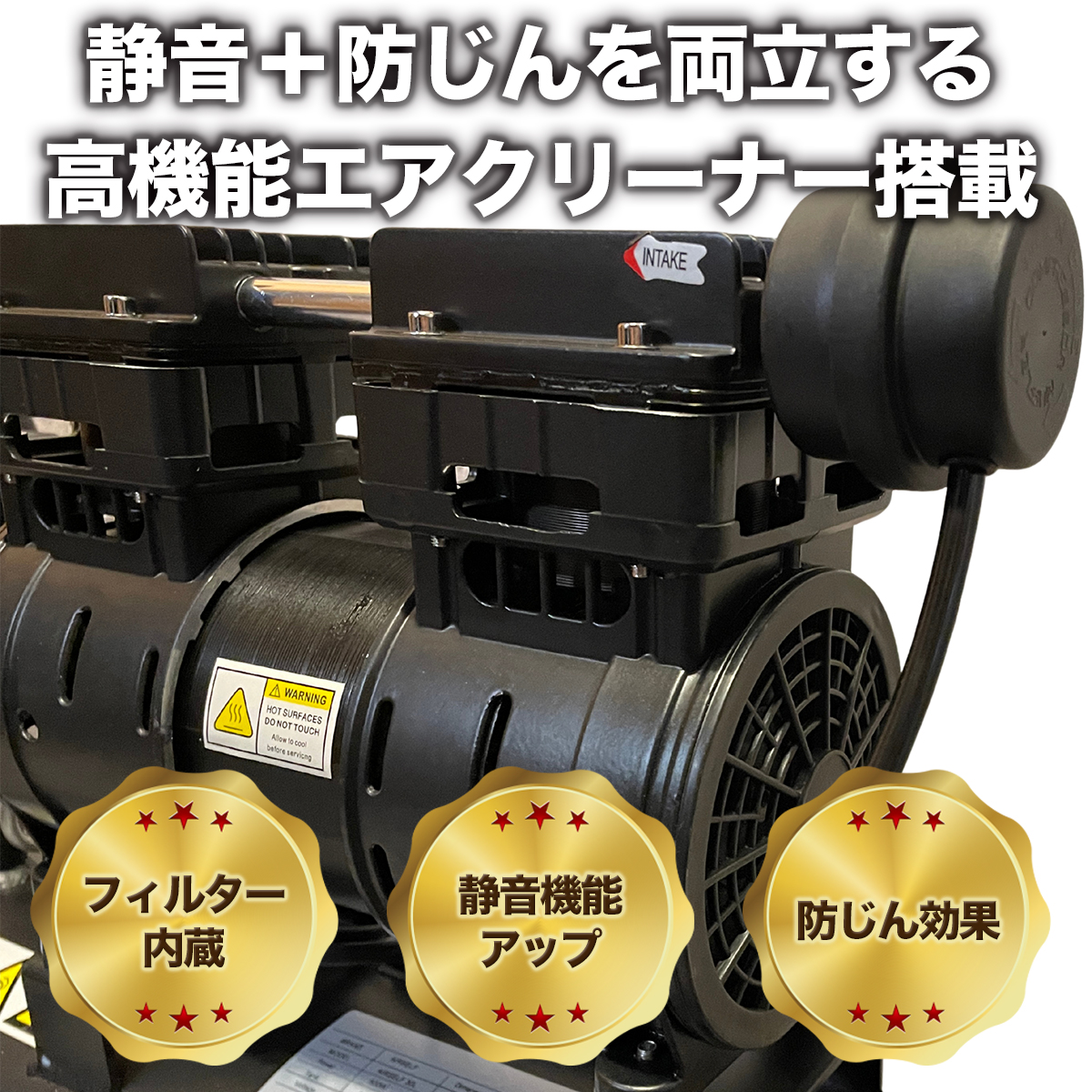 ※商品の性質上、静音仕様のエアーコンプレッサーで開発しておりますが完全無音ではございません。ご了承ください。