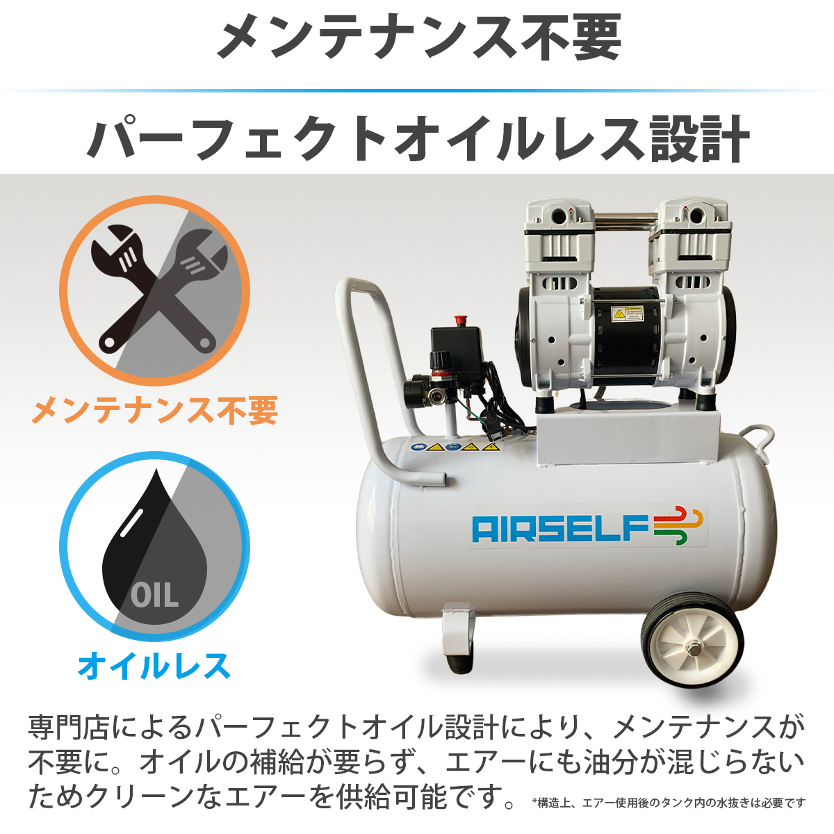 エアーコンプレッサー50L静音オイルレス型100V【AIRSELF】
